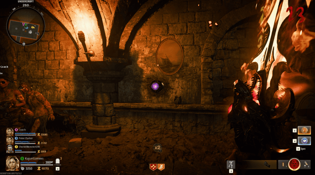Coordination is key as the Boss Fight Arena will get smaller as the fight goes on. Using Incantations against the hordes is huge. While fending off the Zombies, look for weak spots on the boss. They will be glowing bright red. Recommended you use your Mustang & Sally’s or an upgraded LMG on the weak spots for decent damage.