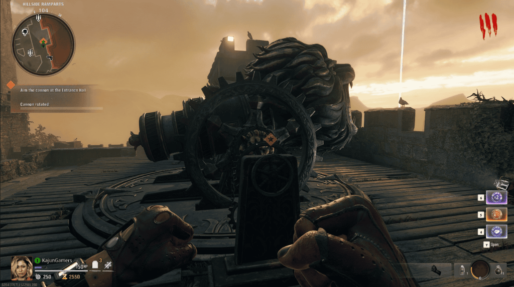 Make your way through the village & up to the Castle. The main entrance will be locked so you’ll need to use the Lion Cannon to blow the doors open.
