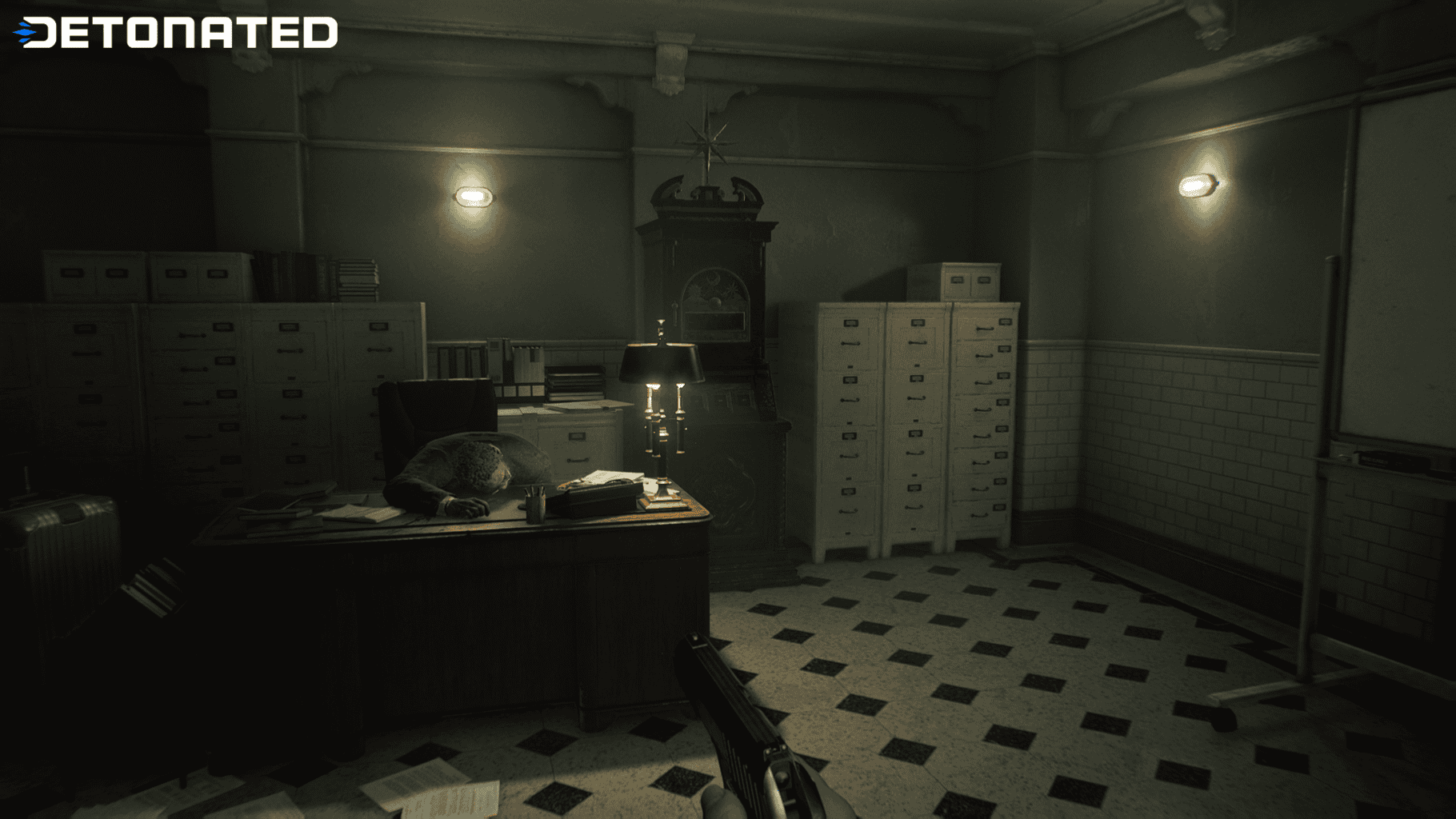 The office contains the body of the Manager, who has a LVL 3 ID Wristband on his wrist, and the third Puzzle Box.