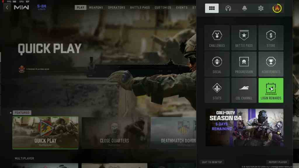 Players will need to head over to their launcher menu in Modern Warfare 2 or Warzone, either by clicking F1 (PC), or Start (Playstation and Xbox). Once in the launcher menu, there’s a daily login reward box in the bottom right which will show you the hip hop war tracks. You’ll have to log into the game on four DIFFERENT calendar days between August 7th and August 16th to claim the war tracks and battle rifle bluprint.